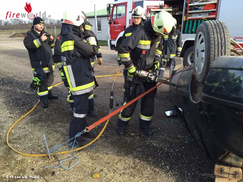 LAA/THAYA (NÖ): Am 22. November 2015 fand die Abschlussübung für das Jahr 2015 statt. Übungsannahme war, dass es zu einem Zusammenstoß zweier Pkw kam, wobei einer der Pkw einen Fußgänger erfasste und dieser unter dem Pkw eingeklemmt wurde.