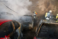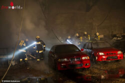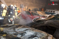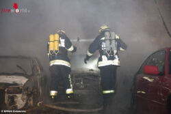 Einsatzleiter Christian Holzer: "Insgesamt wurden 8 Fahrzeuge von der Feuerwehr gelöscht. Durch das schnelle Eingreifen der Feuerwehr konnte der Schaden an der Halle auf ein Minimum reduziert werden."