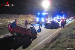 Vor Ort bot sich den Helfern ein auf dem Dach liegendes Auto. Personen waren nicht eingeklemmt. Von der Feuerwehr wurde das Fahrzeug aufgerichtet und von der Unfallstelle geschoben. Nach dem Freimachen der Fahrbahn war der Einsatz für die Frastanzer Feuerwehr, welche mit drei Fahrzeugen und 40 mobilisierten Kräften ausgerückt war, beendet.