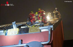 Geschützt durch schweren Atemschutz drangen die Kräfte der Münchner Feuerwehr gewaltsam in die, im zweiten Obergeschoss gelegene Dachgeschosswohnung ein. Um an die glimmende Isolierung zu gelangen, musste die Dachhaut auf einer Fläche von rund 20 Quadratmeter geöffnet werden. Mit einem C-Rohr konnte die Dämmung schließlich abgelöscht werden.