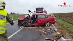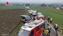 TUMELTSHAM (OÖ): Zu einem Verkehrsunfall mit eingeklemmter Person wurden die Feuerwehren Walchshausen und Tumeltsham am 27. November 2015 zu Mittag auf der B141a, Höhe „Tumeltshamer Berg“, alarmiert.