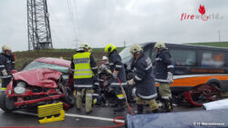 Ein Pkw aus Andrichsfurt kommend, unterwegs Richtung Tumeltsham, geriet ins Schleudern und prallte mit einem Kleinbus zusammen. Die Lenkerin des Pkw war eingeklemmt und musste mit hydraulischem Rettungsgerät aus dem Wrack gerettet werden. Für den Beifahrer kam jede Hilfe zu spät, dieser verstarb noch an der Unfallstelle.