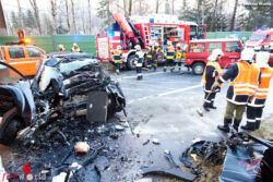 Der Mann wurde dabei im Auto eingeklemmt und musste von der alarmierten Feuerwehr aus dem Wrack geschnitten werden. Für den Autofahrer kam jede Hilfe zu spät, er erlag noch am Unfallort seinen schweren Verletzungen.