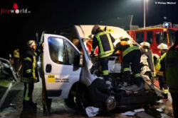 In einer über einstündigen Rettungsaktion konnte der Verunfallte von der Feuerwehr Nieder-Ohmen mit hydraulischen Rettungsgeräten befreit werden. Wie Einsatzleiter Stefan Hahn am Unfallort informierte, war der 35-Jährige schwer im Beinbereich eingeklemmt. „Durch die erhebliche Deformierung des Unfallfahrzeugs war die Rettung sehr kompliziert“, so Hahn. Die Feuerwehrleute mussten das Lenkrad des Kleintransporters abschneiden und Rettungszylinder zur Weitung der eingedrückten Karosserie einsetzen. Erstversorgt wurde der Verunfallte durch ein Rettungsteam und einen Notarzt, ein Rettungshubschrauber konnte die Unfallstelle aufgrund von Nebel nicht anfliegen.