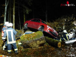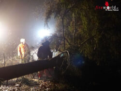 Nach der Alarmierung der rund 60 Einsatzkräfte aus Walsrode, Hünzingen, Düshorn, Bomlitz sowie dem Rettungsdienst am Mittwoch um 17:15 Uhr wurden zwei Einsatzabschnitte gebildet, die umfangreich ausgeleuchtet wurden, da es im Wald „stockfinster“ war. Im Abschnitt eins (EA1) mussten insgesamt fünf betroffene Personen befreit werden. Hier war bei Baumfällarbeiten ein großer Baum auf einen PKW gestürzt und hatte dabei das Fahrzeug stark deformiert. Eine Person war zwischen Baum und Motorhaube und vier weitere Menschen im Fahrzeug eingeklemmt. Neben Motorsägen, mit denen die Äste und der Baum beseitigt wurden, mussten verschiedenste Geräte, wie Rettungsschere, -spreizer, Luftheber usw. eingesetzt werden, um die Personen zu befreien. Im EA2 war ein weiterer PKW, der mit drei Personen besetzt war, ins Schleudern gekommen, von dem Waldweg abgekommen und auf einem hohen Baumstumpf zum Stehen gekommen. Der PKW begann zu brennen, die Flammen drohten auf den Wald überzugreifen. Nachdem das Feuer gelöscht war, wurden die Rettungsarbeiten eingeleitet. Auch hier musste umfangreiches technisches Gerät eingesetzt werden, aber zusätzlich auch noch die Drehleiter, um den PKW zu sichern und Lasten anzuheben. Nach der Rettung der Personen wurde noch der Wald nach weiteren Personen abgesucht und mit der Wärmebildkamera ein Waldarbeiter gefunden, der vom PKW erfasst und in den Wald geschleudert wurde.