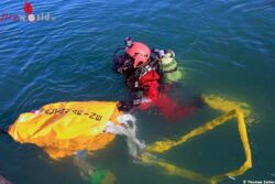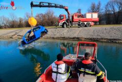 Nachdem die Taucher das Fahrzeug gesichert hatten, konnte dieser mit einem Hebeballon wieder an die Wasseroberfläche transportiert werden. Das Fahrzeug wurde mittels Kran des Wechselladefahrzeuges der Feuerwehr Knittelfeld aus dem Wasser gehoben. Eine positive Bilanz zog der Übungsleiter Oberbrandinspektor Hans-Jürgen Gallmayer nach der über vier Stunden dauernden Übung. Besonders hob OBI Gallmayer die perfekte Zusammenarbeit zwischen den Bootsführern und ein Einsatztauchern hervor.