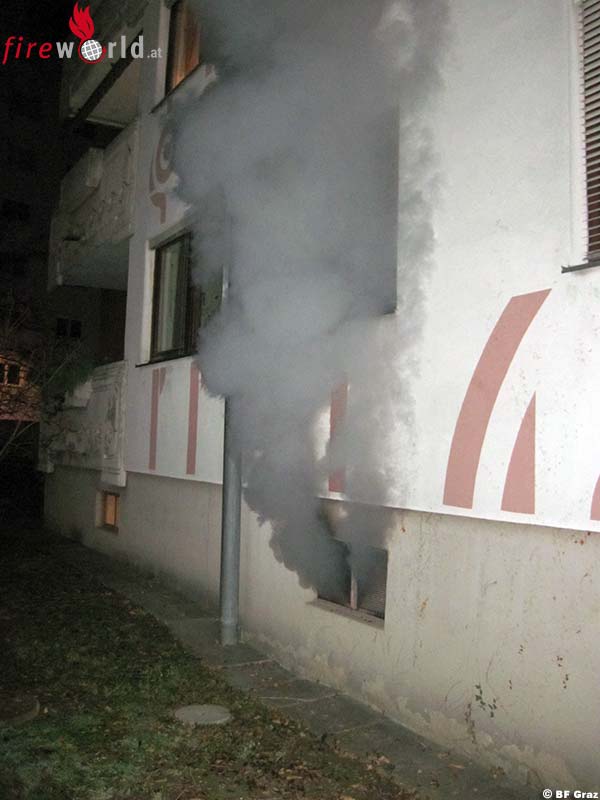GRAZ (STMK): Die Berufsfeuerwehr Graz wurde am Sonntag, den 29. November 2015, um 1.57 Uhr zu einem Kellerbrand in den 6. Bezirk (Hafnerriegel) alarmiert. In einem Mehrparteienhaus ist es in einem Kellerabteil – aus vorerst unbekannter Ursache – zu einem Brand gekommen.