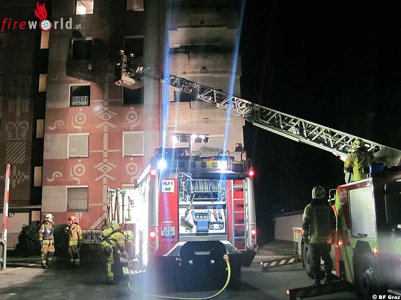 Neben der Berufsfeuerwehr standen auch das Rote Kreuz sowie die Polizei im Einsatz. Eine Brandnachschau wurde seitens der Berufsfeuerwehr ebenfalls durchgeführt. Die Brandursachenermittlung wurde aufgenommen. Die Berufsfeuerwehr Graz stand unter der Einsatzleitung von Branddirektor Johann Kirnich mit fünf Fahrzeugen und 21 Mann im Einsatz.
