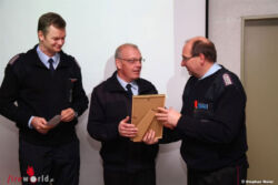 Im Anschluss verabschiedeten Jens Führer und Stephan Meier den bisherigen Stellvertretenden Pressesprecher der Kreisfeuerwehr Abschnitt Süd, Thomas Bösewill, aus diesem Kreis. Sie bedankten sich mit einem kleinen Präsent und einer Erinnerungsurkunde für die jahrelange gute Zusammenarbeit bei Ihm. Seine Nachfolge wird Thomas Klamet aus Bomlitz antreten.
