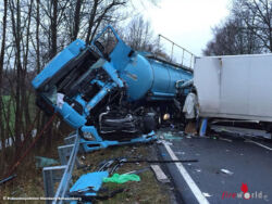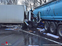 Deutschland: Lkw kollidiert auf B 442 mit Tankwagen: ein Fahrer getötet