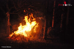 Abschließend wurde der Holzstoß verteilt und etwaige Glutnester abgelöscht. Gegen 2:15 Uhr konnten alle vier Feuerwehren wieder in die Feuerwehrhäuser einrücken bevor die stürmische Nacht begann. Insgesamt standen 84 Mitglieder mit 14 Fahrzeugen bei den Bränden im Einsatz.