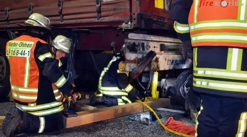 DIESSENHOFEN (SCHWEIZ): Durch eine elektrostatische Entladung entzündete sich am Dienstag, 10. November 2015, in Diessenhofen Benzin bei einem Tankvorgang. Die Fahrzeugkombination geriet in Vollbrand.