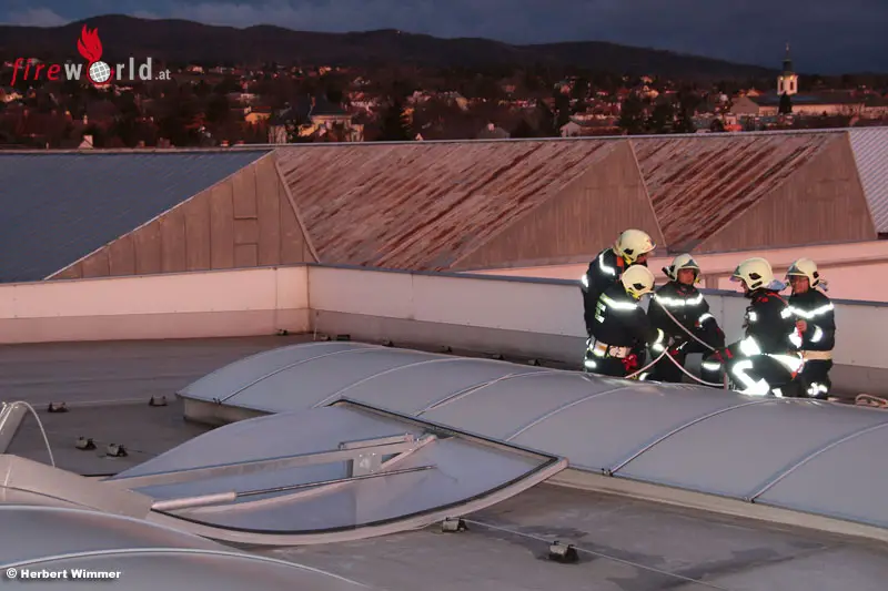 Diesmal für die Freiwillige Feuerwehr Wiener Neudorf in die Brauhausstraße, um lose Dachziegel zu sichern.