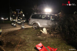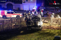 "Es war ein Fahrzeug am Unfall beteiligt, welches zuerst gegen eine Hausmauer gefahren und dann gegen einen Baum. In der Hecke ist das Auto dann stehen geblieben. Die Fahrerseite war blockiert durch eine Hecke. Wir haben als Erstmaßnahme die Verletztenbetreuung gemacht. Von der Beifahrerseite sind wir in das Auto hineingekommen. Zusätzlich war das Auto so verkeilt, dass wir mit hydraulischem Rettungsgerät die Türe aufzwängen haben müssen," schildert Martin Kirner, Einsatzleiter der Feuerwehr Pettenbach.