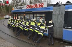 Bayern: Feuerwehr schiebt Straßenbahn mit Muskelkraft in die Gleise
