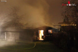 TULLN (NÖ): Am 1. Dezember 2015 wurde die Feuerwehr der Stadt Tulln um 17:40 Uhr zu einer vermutlich in Brand geratenen Weihnachtsbeleuchtung in einem Garten im Tullner Stadtgebiet alarmiert. Beim Eintreffen des ersten Tanklöschfahrzeuges an der Einsatzadresse in der Frauenhofner Straße stellte sich bei der Erkundung heraus, dass von einem Kanonenofen ausgehend ein Teil der Außenwand sowie das Dach eines Gartenhauses in Brand geraten waren.