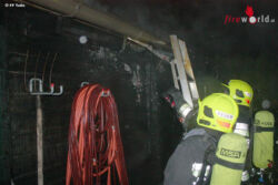 Daher wurden sofort mit dem Aufbau einer Löschleitung begonnen und weitere, im Feuerwehrhaus verbliebene Einsatzkräfte, angefordert.