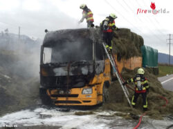 Schweiz: Mit Stroh beladener Lkw brannte auf A13 bei Au