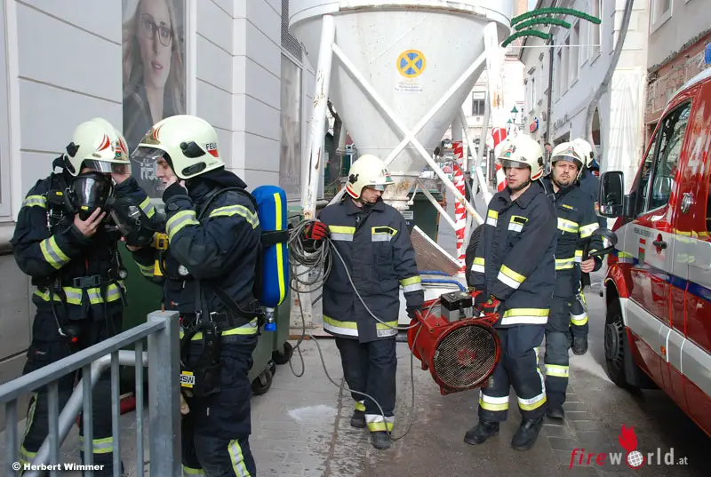 Das größte Problem stellte jedoch der Rauch dar. Dieser zog sich über alle vier Geschosse. Daher wurden im Erdgeschoss und beim Kellerfenster in der Kaiserin Elisabeth-Straße ein Hochleistungslüfter positioniert. Zusätzlich wurde im Keller ein Be- und Entlüftungsgerät in Stellung gebracht.