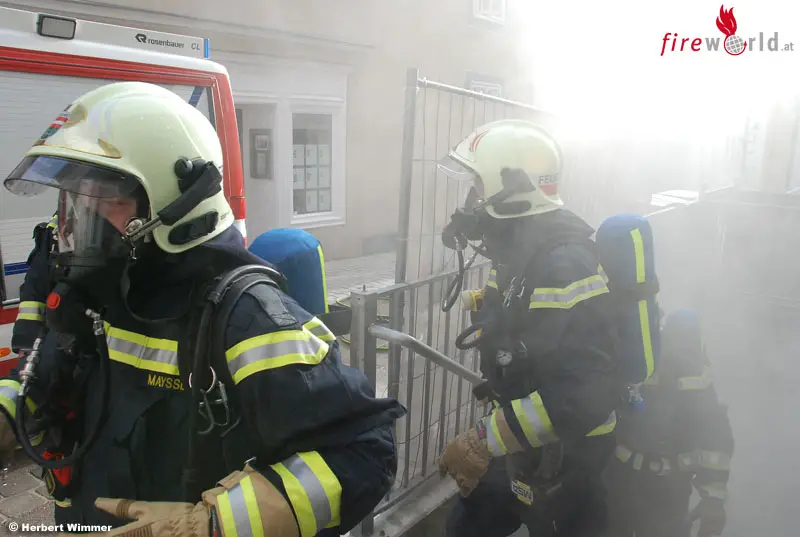 Sofort rüstete sich ein Atemschutztrupp mit einem C-Rohr aus und begab sich über den Kellerabgang ins Objekt. Beim Öffnen der Kellertüre drang bereits dichter Rauch aus dem Haus. Der Brand konnte in einem Müllraum lokalisiert werden und binnen kürzester Zeit abgelöscht werden.