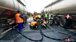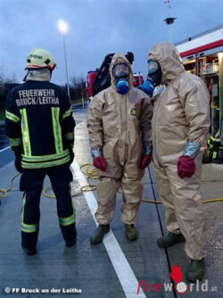BRUCK AN DER LEITHA (NÖ): Am Vormittag des 1. Dezember 2015 wurde bei der Kontrolle eines mit dem Lösungsmittel Xylol beladenen Satteltankfahrzeugs auf dem Verkehrskontrollplatz Bruck an der Leitha an der A4 Ost Autobahn ein schwerer Mangel festgestellt. Aus einem Rohr an dem Lkw tropfte der Gefahrenstoff heraus, woraufhin um 10:34 Uhr zunächst die Freiwillige Feuerwehr Bruck an der Leitha zur Hilfeleistung gerufen wurde.