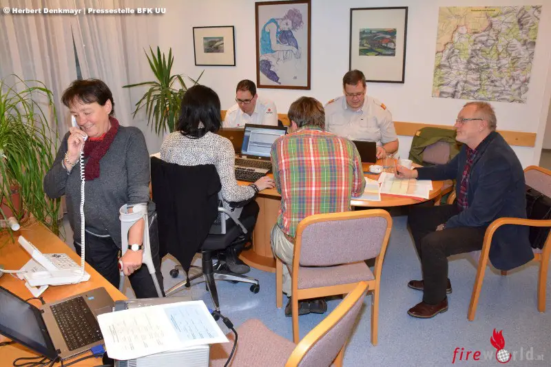 URFAHR-UMGEBUNG (OÖ): Am Freitagnachmittag, den 4. Dezember 2015, fand auf der Bezirkshauptmannschaft und der Bezirkswarnstelle Urfahr-Umgebung die Bezirkskatastrophenschutzübung 2015 statt. Annahme war eine Schneedruckkatastrophe in den nördlichen Gemeinden des Bezirks Oberneukirchen, Reichenthal und Vorderweißenbach.