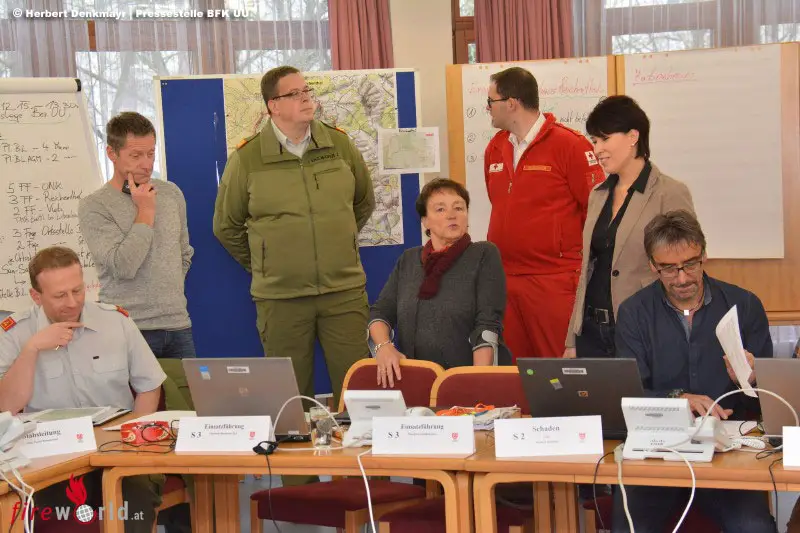 Die Einsatzleitung bei der Übung übernahmen seitens der Behörde Bezirkshauptmann Dr. Paul Gruber und seitens der Feuerwehr Brandrat Christian Breuer. Durchgespielt wurden alle Aufgaben der einzelnen Stabsabteilungen. Das sind Personal und Betreuung, Gefahren- und Schadenslage, Einsatzführung, Versorgung, Öffentlichkeitsarbeit, sowie Kommunikation und Information.