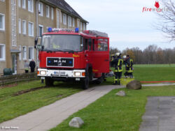 Der Herd wurde abgeschaltet und das etwas 2-jährige Kind, welches geschlafen hatte, der aufgelösten Mutter übergeben. Die Drehleiter und das Löschfahrzeug sackten in dem weichen Boden der Feuerwehrzufahrt ein und steckten fest. Sie konnten die Einsatzstelle nur verlassen, da sie mit Muskelkraft bzw. mittels eines Treckers aus der misslichen Lage befreit wurden. So war der Einsatz der 18 Ehrenamtlichen erst nach rund 1 ½ Stunden beendet. Danach konnten sie sich auf die Weihnachtsfeier vorbereiten, die am Abend im Feuerwehrhaus stattfand.