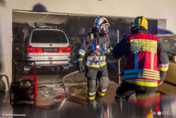 In der Garage eines Einfamilienhauses brach ein Brand aus. Sofort konnte mit der Vornahme einer C-Löschleitung unter Atemschutz die Brandbekämpfung durch die eingetroffenen Feuerwehreinsatzkräfte aufgenommen werden. Einige Feuerwehrkameraden aus dem Ortsteil Möllersdorf befanden sich gerade zufällig noch im Feuerwehrhaus und hörten die Funksprüche mit. Umgehend nahmen sie Kontakt über Funk mit dem Einsatzleiter auf und boten ihre Hilfe an. Kurz darauf rückte das Rüstlöschfahrzeug, zwecks Sicherheitsreserve für die eigesetzten Atemschutztrupps, ebenfalls zur Einsatzstelle aus.