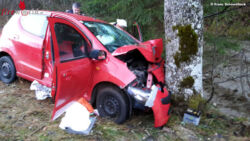 Nö: Pkw mit zwei Frauen bei Glatteis auf L 133 gegen Baum: eingeklemmt, eine Tote
