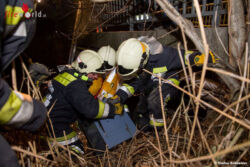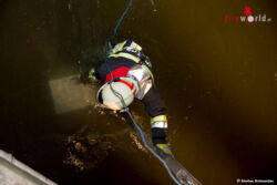 Um diesen aus dem Fluss bergen zu können, wurde die örtliche Freiwillige Feuerwehr Pfaffstätten von der Kriminalabteilung angefordert. Nach Ausleuchten der Einsatzstelle stieg ein gesicherter Feuerwehrmann über eine in Stellung gebrachte Steckleiter von der Brücke ins Bachbett. Der Wr.Neustädter Kanal führt derzeit nur Niedrigwasser und hat in diesem Bereich keine große Fliesgeschwindigkeit. Über die seitliche steile Böschung konnte dann der Tresor geborgen werden.
