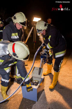 Der anscheinend aus einem Einbruch stammenden Tresor, wurde von einem unbekannten Täter zwar auf der Rückwand mittels Schneidewerkzeug zum Teil aufgeschnitten, jedoch aber der Inhalt mehrere Medikamentenschachteln und eine geschlossene Handkassa befand sich noch im Inneren. Um den genauen Inhalt feststellen zu können, musste der zum Teil aufgeschnittene Tresor von den Feuerwehrleuten mittels hydraulischen Spreizer komplett geöffnet werden.