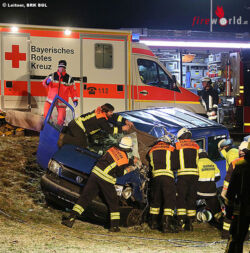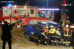 Die Leitstelle Traunstein schickte kurz nach Mitternacht die Freiwilligen Feuerwehren Schneizlreuth, Bad Reichenhall und Weißbach sowie das Rote Kreuz mit zwei Rettungswagen, einem Notarzt und dem Einsatzleiter zum Unfallort. Die Einsatzkräfte mussten den im Fahrzeug eingeschlossenen Mann medizinisch versorgen und mit dem hydraulischen Rettungssatz befreien. Notarzt und Rettungsassistenten brachten ihn dann zur weiteren Behandlung ins Salzburger Landeskrankenhaus.