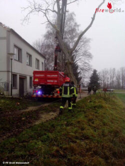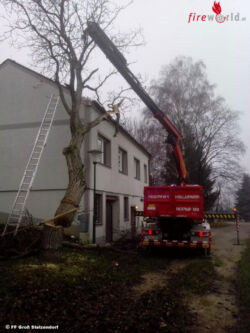 GROSS STELZENDORF (NÖ): Am 07.12.2015 um 11:39 Uhr wurde die Feuerwehr Groß Stelzendorf zu einer technischen Hilfeleistung nach Groß Stelzendorf alarmiert. Vorort wurde bei der Erkundung vom Einsatzleiter festgestellt, dass ein Baum beim Fällen nicht wie geplant auf den Weg, sondern auf ein Haus gefallen war.
