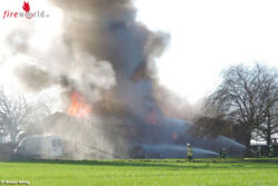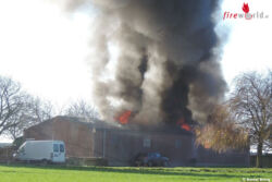 BEDBURG-HAU (DEUTSCHLAND): Um 10:56 Uhr wurde die Freiwillige Feuerwehr Bedburg-Hau am 9. Dezember 2015 zu einem Scheunenbrand an die Uedemer Straße in Schneppenbaum alarmiert. Dort war aus bisher unbekannter Ursache eine ehemalige Scheune in Brand geraten.