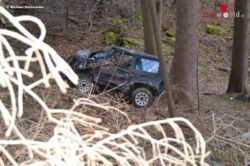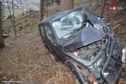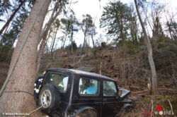 HAIMING (TIROL): Zu einem Fahrzeugabsturz auf die L309 – Haimingerbergstraße wurden die Feuerwehren Haimingerberg, Haiming und Silz am 9. Dezember 2015 um 15:14 Uhr gerufen. Der Lenker des Geländewagens kam auf der regennassen Fahrbahn von der Straße ab und stürzte ca. 50-60 Meter über steiles Gelände.