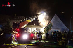 Vor Ort angekommen erkannte die Feuerwehr schnell, dass das Gebäude nicht mehr zu retten war. Teile des Dachstuhles waren schon eingestürzt und auch das Erdgeschoss stand bereits in Vollbrand. Die erste Vermutung darüber, dass sich noch Personen im Gebäude befänden, bestätigte sich weiteren Verlauf des Einsatzes glücklicherweise nicht. Vielmehr galt es seitens der Feuerwehr ein Übergreifen des Brandes auf benachbarte Gebäude zu verhindern.