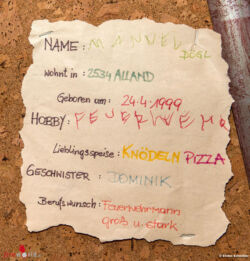 Der heute 16-jährige Manuel kam am 24. April 1999 als Frühchen auf die Welt, mit 549g und 29,5 cm Größe. Seine Entwicklung war durchaus gut, bis zum 6. Lebensjahr. Er konnte sprechen, laufen, Rad fahren usw… Dann hat sich seine gesundheitliche Situation verschlechtert. Sprachstörungen und Gleichgewichtsstörungen traten plötzlich immer häufiger auf. Es ist eine fortschreitende Krankheit ohne Diagnose, die aber laut Ärzten nichts mit seiner Frühgeburt zu tun hat.