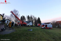 Eingesetzte Fahrzeuge: Schadstofffahrzeug, Messdienst, Werkstättenfahrzeug, Kran, Kran-Begleit