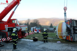 Sofort rückte die Schadstoffgruppe der Feuerwehr der Stadt St. Pölten zu der Einsatzstelle aus. Zur späteren Bergung des Unfall-Lkw wurde auch das Kranfahrzeug der Feuerwehr St. Pölten – Stadt angefordert. Durch die ungünstige Lage des Tankwagens war das Umpumpen des Heizöls nicht problemlos möglich und nahm einige Stunden in Anspruch. Nachdem ein Großteil des Heizöls in einen zweiten Lkw umgepumpt werden konnte, wurde das verunfallte Fahrzeug durch den Kran aufgestellt.