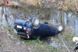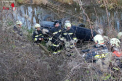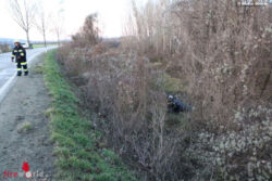 ZWENTENDORF (NÖ): Kurz nach sieben Uhr früh stürzte am 13. Detember 2015 ein Lenker mit seinem Fahrzeug auf der L112 kurz vor der Ortseinfahrt Bärndorf von Zwentendorf (Bezirk Tulln) kommend über eine acht Meter hohe Böschung und kam am Rande eines Entwässerungsgraben am Dach zum Liegen.