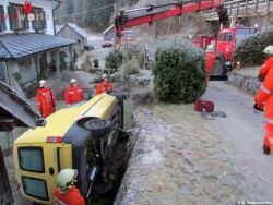 Nur zwei Tage zuvor war die FF Bad Goisern schon zu einer Fahrzeugbergung fast an der derselben Stelle gerufen worden, diesmal fanden die Einsatzkräfte einen Pkw vor, der über eine Mauer gestürzt und in Nachbar´s Garten zu liegen gekommen war.