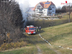 Stmk: Feuerwehr Hohenkogl beim Brand eines kleinen Waldstückes im Einsatz