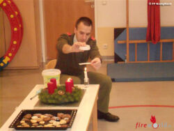 Mit einer „Keksgeschichte“ wurde im Kindergarten der Einstieg geschafft. Die Kinder waren sprichwörtlich Feuer und Flamme beim Mitarbeiten und konnten so erfahren, welche Gefahren bei Adventkranz und Christbaum „lauern“. Gemeinsam wurde besprochen, welche Vorsichtsmaßnahmen zur Brandverhütung in der Weihnachtszeit getroffen werden können. Auch wurde die Sinnhaftigkeit eines Heimrauchmelders demonstriert, Wissenserweiterung zum Thema Brandschutz konnte vermittelt werden und wir – das G.S.F-Team der Krenglbacher Feuerwehr – waren erstaunt, welch‘ eigenes Wissen die Kinder bereits miteinbrachten.In der Volksschule wurde mit anschaulichen Experimenten das Thema Brandschutz zu Weihnachten und die richtigen Verhaltensregeln diesbezüglich gemeinsam mit den Kindern erarbeitet. Bemerkenswert waren die positiven Rückmeldungen der Kinder. Man konnte merken, dass der Versuch hier bewusstseinsbildene Maßnahmen zu setzen, auch Wirkung zeigt. Insbesondere bei Heimrauchmeldern – welche nicht nur zur Weihnachtszeit Leben retten können – konnten wir erstaunliches Wissen der Kinder feststellen. Abschließend sahen die Kinder einen Kurzfilm, bei dem ein Zimmerbrand – durch einen Adventkranz ausgelöst – nachgestellt worden ist.