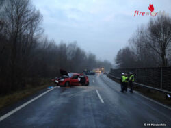FÜRSTENFELD (STMK): Die Feuerwehren Altenmarkt und Fürstenfeld wurden am Morgen des 16. Dezember 2015 von der RK-Leitstelle zu einem Verkehrsunfall mit eingeklemmter Person verständigt. Am Einsatzort eingetroffen konnte festgestellt werden, dass der verletzte Lenker sich bereits aus dem stark beschädigtem Fahrzeug befreien konnte.