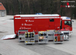Die Einsatzfahrzeuge sind mit verschiedensten Ausrüstungsgegenständen für die Personendekontamination, mit Atemschutzgeräten und diversen Messgeräten, mit Schutzanzügen der Kategorie 3 (Chemikalienschutzanzüge) u.v.a.m. ausgerüstet. Die beiden Körperschutzfahrzeuge ersetzen die in den Jahren 1989 und 1990 angekauften Körperschutzfahrzeuge. Jedes der neuen KSF repräsentiert einen Wert von rund Euro 370.000,-.