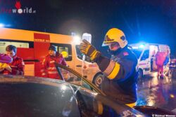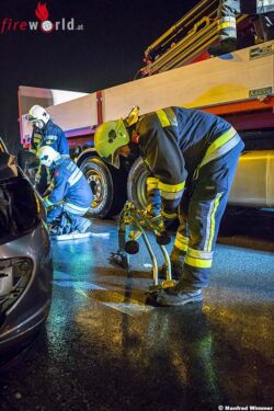 LANGENLOIS (NÖ): Zu einem Verkehrsunfall mit mehreren eingeklemmten Personen wurde am 18. Dezember 2015 die Feuerwehren Langenlois, Hadersdorf und Krems an der Donau alarmiert. Auf der B218 im Kreuzungsbereich mit der Wiener Straße kollidierten im strömenden Regen zwei Fahrzeuge.