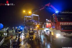 Dabei wurde ein Fahrzeug mittels Kran auf das Wechselladefahrzeug der FF Langenlois gehoben, der zweite Pkw wurde mit Hilfe des Krans auf einen Abschleppanhänger verladen. Nachdem die Fahrzeuge von der Straße entfernt und auf einem geeigneten Abstellplatz verbracht wurden, säuberte die Feuerwehr die Fahrbahn und konnte anschließend ebenfalls einrücken.