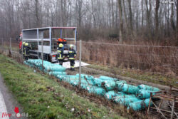Beim Eintreffen des erst vor weniger als 24 Stunden offiziell in Dienst gestellten Vorausrüstfahrzeuges an der Unfallstelle wurde durch die Besatzung Gasgeruch wahrgenommen. Daher musste die Einsatzstelle abgesichert, ein Brandschutz aufgebaut und die Gasflaschen aus insgesamt sechs Flaschenbündel auf Beschädigungen und Dichtheit überprüft werden. Seitens der Exekutive wurde ab 14:25 Uhr eine Totalsperre der Richtungsfahrbahn Wien zwischen Tulln und dem Knoten Stockerau veranlasst.