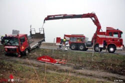 Nachdem die 86 Gasflaschen von Hand auf ein Ersatzfahrzeug umgeladen, die Kardanwelle entfernt und die Bremsen gelöst waren wurde der zweiachsige Lastkraftwagen mit einer Bergeseilwinde aufgerichtet und in weiterer Folge mittels Kran geborgen. Anschließend erfolgte der Abtransport mittels LKW-Abschleppbrille zum Firmenstandort, wo das Fahrzeug gesichert abgestellt werden konnte.
